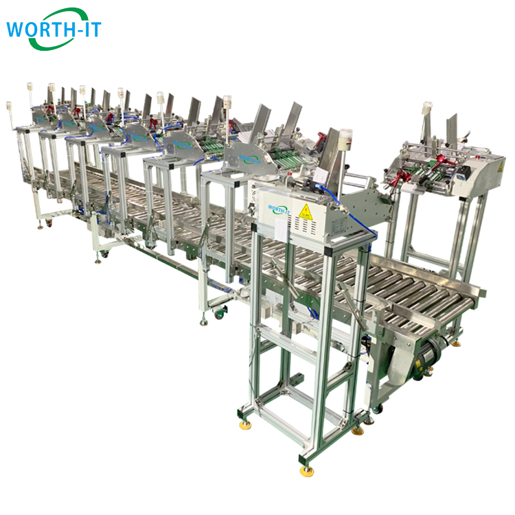 自動發卡配卡聯動線應用于說明書、保修卡、好評卡等自動投料入箱或盒,電子產品應用較多。一條線可代替多名員工,僅需1人即可操作,自動發卡替代人工配卡、配頁。